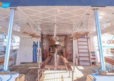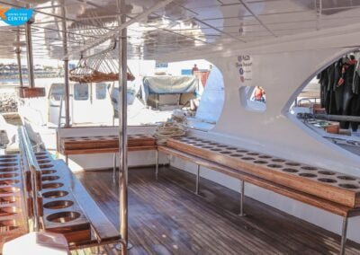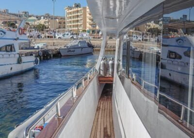 - Auf unserem Tauchdeck können bis zu 100 Tauchflaschen gelagert werden.