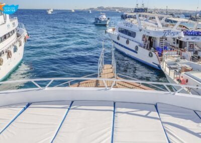 Wir haben auch unser Zodiac. Es ist 6 Meter lang und 2 Meter breit. Daher können bis zu 6 Taucher gleichzeitig darauf fahren. Es begleitet die Sweet Maya zu all unseren Tauchplätzen. Als Ergebnis führen wir von diesem Zodiac aus Drift-Tauchgänge rund um Hurghada durch, damit unsere Taucher mehr Gebiete abdecken können.