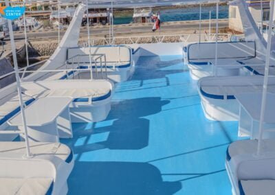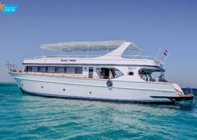 Wir präsentieren stolz unsere Sweet Maya, eine 27m x 7,20m große Schönheit mit zwei Decks. Sweet Maya ist speziell für Taucher und tägliche Bootstauchgänge konzipiert. Bei Diving Star haben Sicherheit und Schutz an Bord des Bootes oberste Priorität. Daher ist unser Boot mit Erste-Hilfe-Ausrüstung, Rettungswesten, Feuerlöschern und mehr ausgestattet.